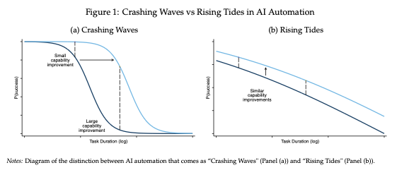 This distinction matters for how organizations and workers should respond. A crashing wave gives you almost no warning. A rising tide, even a fast one, is visible. You can see it coming. You can move.